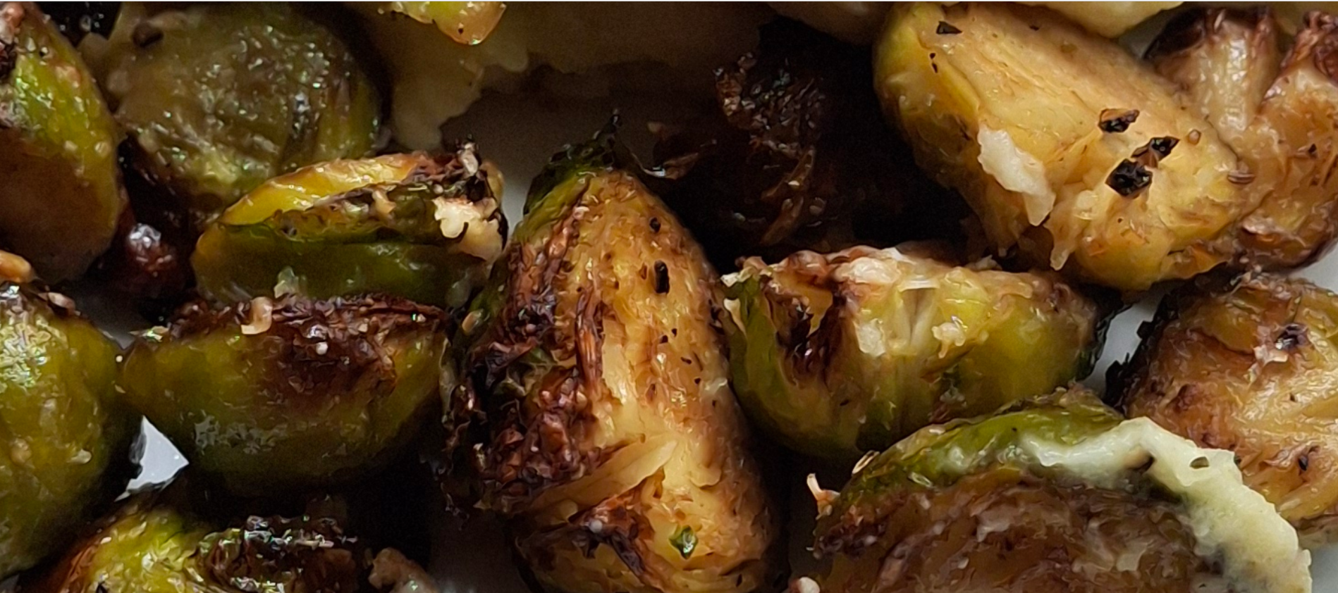 Den Rosenkohl abtropfen und etwas abkühlen lassen. Jetzt längst halbieren und in einer Schüssel mit der Marinade gut vermischen.