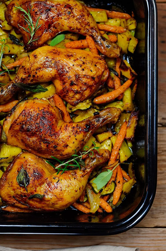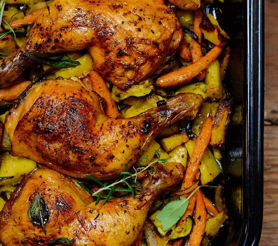 Ofenkartoffeln mit Hähnchenkeulen schnell und einfach