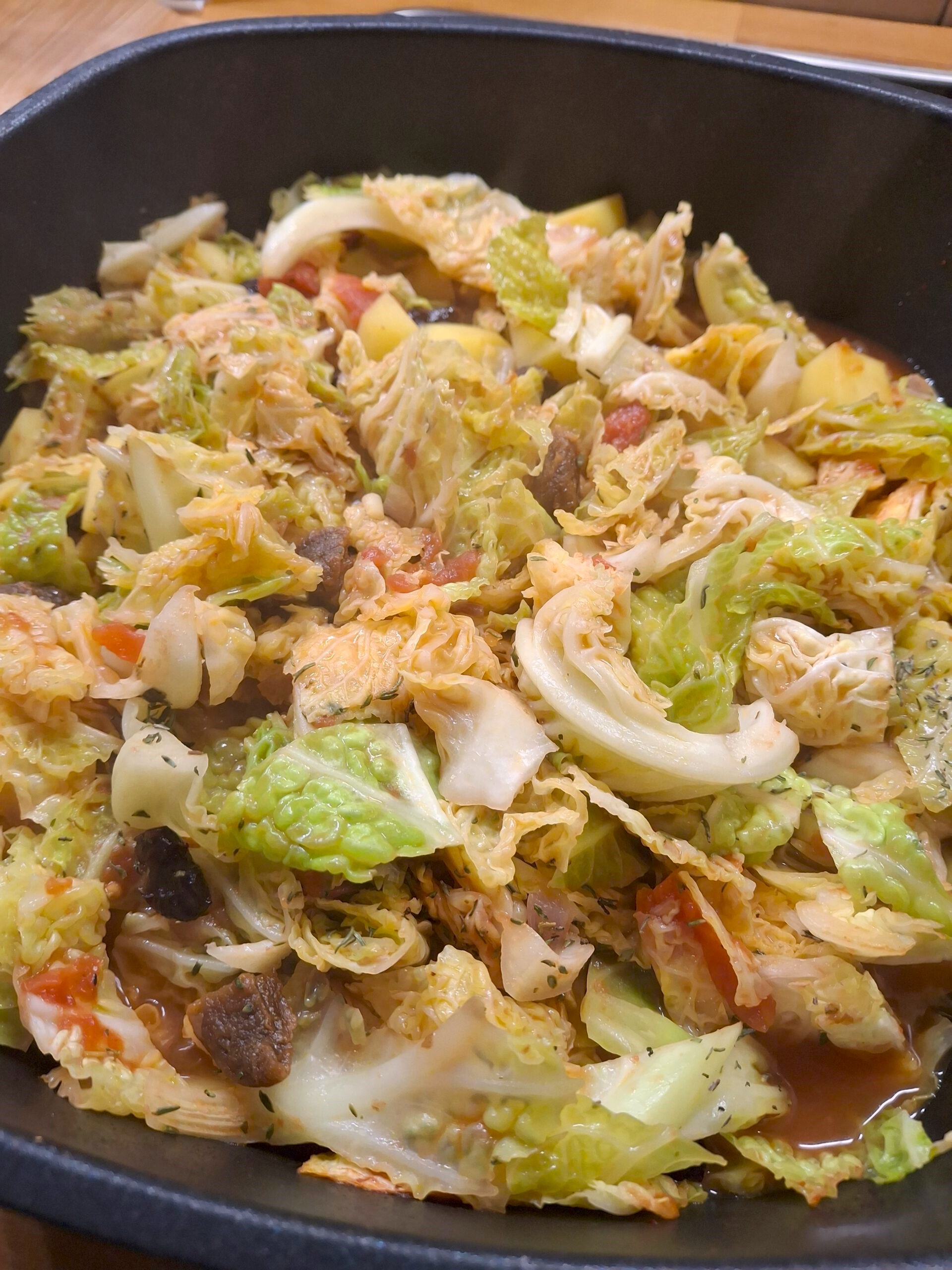 Den Wirsing vierteln die äußeren dicken Blätter ablösen und den Strunk herausschneiden, waschen und die Blätter in Streifen schneiden. Kartoffeln schälen waschen und würfeln. Zwiebel würfeln, Aprikosen halbieren. Die Zwiebeln in Öl anschwitzen, den Wirsing und die Kartoffeln dazugeben und zusammen mit dem Tomatenmark kurz anschwitzen. Mit der Gemüsebrühe ablöschen. Dosentomaten, Aprikosen, Cranberrys Balsamico, Honig […]
